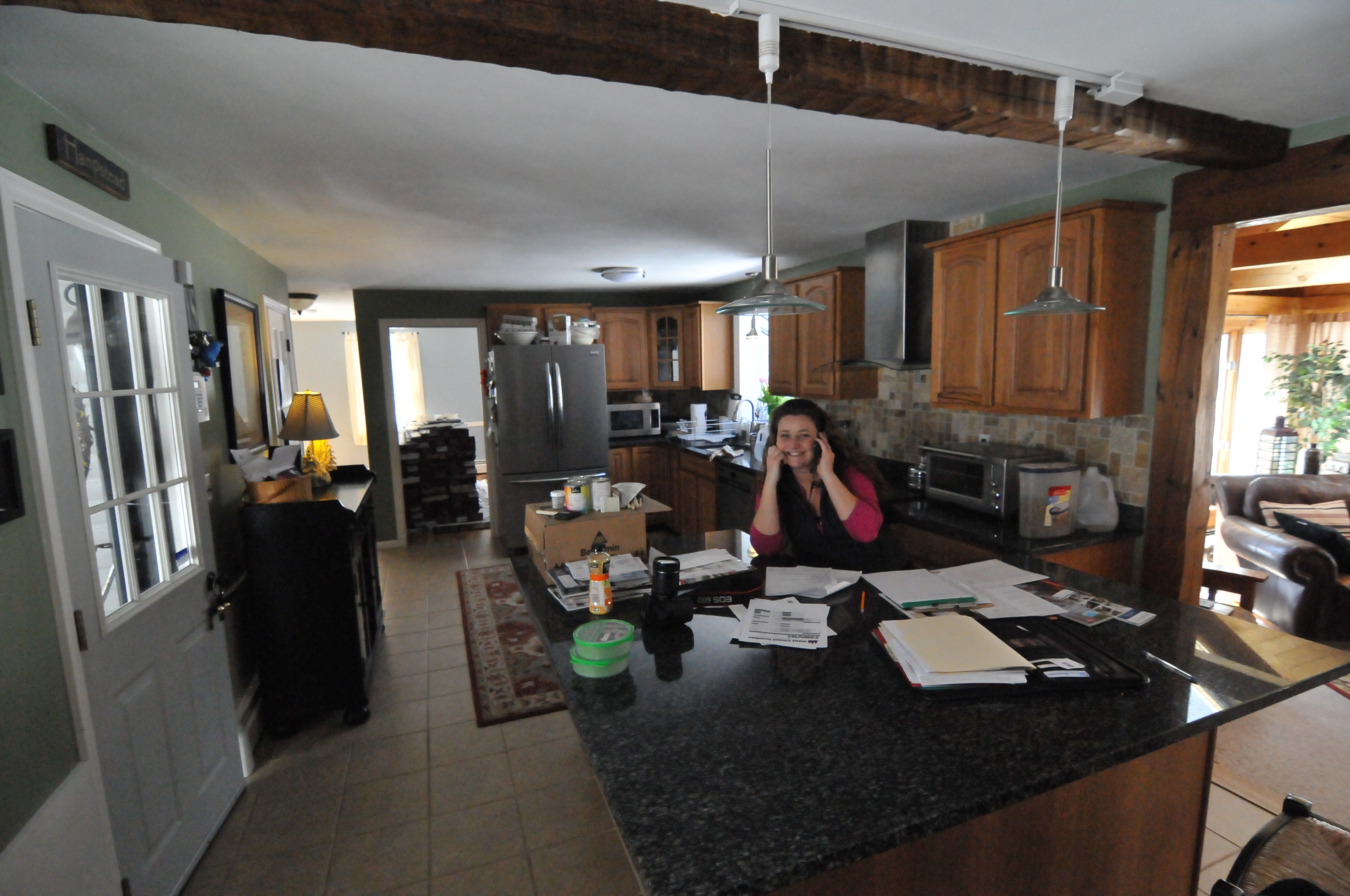 Phase 2 of the project We are using this blog space to document some of the work we are doing to our home in Southern NH. Kelly Leighton from Chris Leighton Construction is helping us with design and choices. Here she sits in our kitchen on the phone. Share this: Share on X (Opens in new window) X Share on Facebook (Opens in new window) Facebook Like Loading...